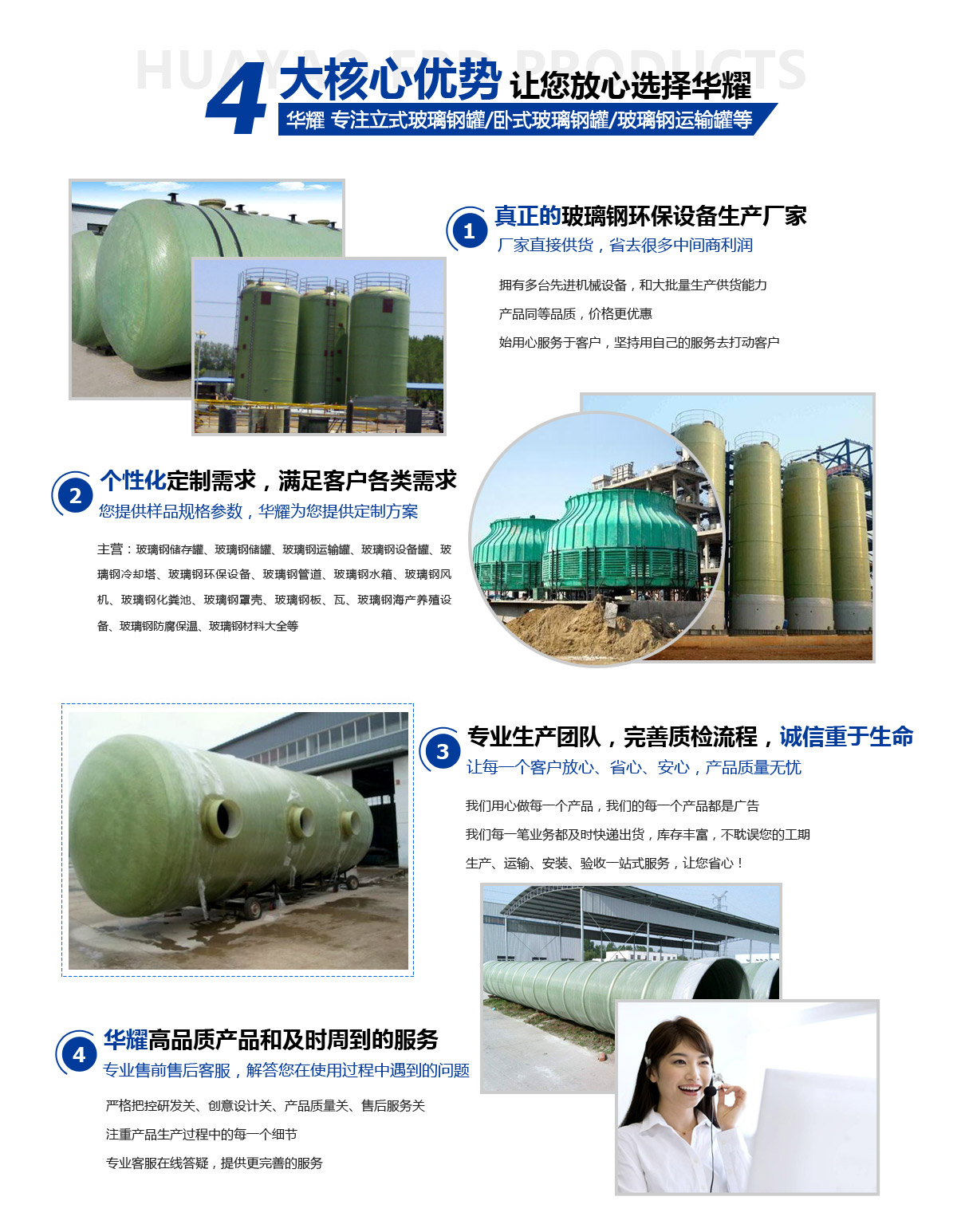 濰坊華耀玻璃鋼有限公司是生產玻璃鋼鹽酸罐,玻璃鋼儲存罐,立式玻璃鋼罐,臥式玻璃鋼罐的專業廠家,位于世界風箏都濰坊安丘市收費站北3公里206國道路西,位置優越,交通便利,技術力量雄厚,檢測手段完善,產品質量可靠,服務熱情周到,重合同,守信用。          玻璃鋼產品主要有:玻璃鋼儲罐、玻璃鋼儲存罐、玻璃鋼鹽酸罐、玻璃鋼容器、玻璃鋼儲槽,玻璃鋼運輸罐,玻璃鋼冷卻塔,玻璃鋼環保設備,玻璃鋼管道,風機,水箱,玻璃鋼化糞池,化工設備,防腐設備襯里,玻璃鋼板瓦,玻璃鋼海產養殖設備,乙稀基樹脂,玻璃鋼纖維布等。       公司主要產品有: &....